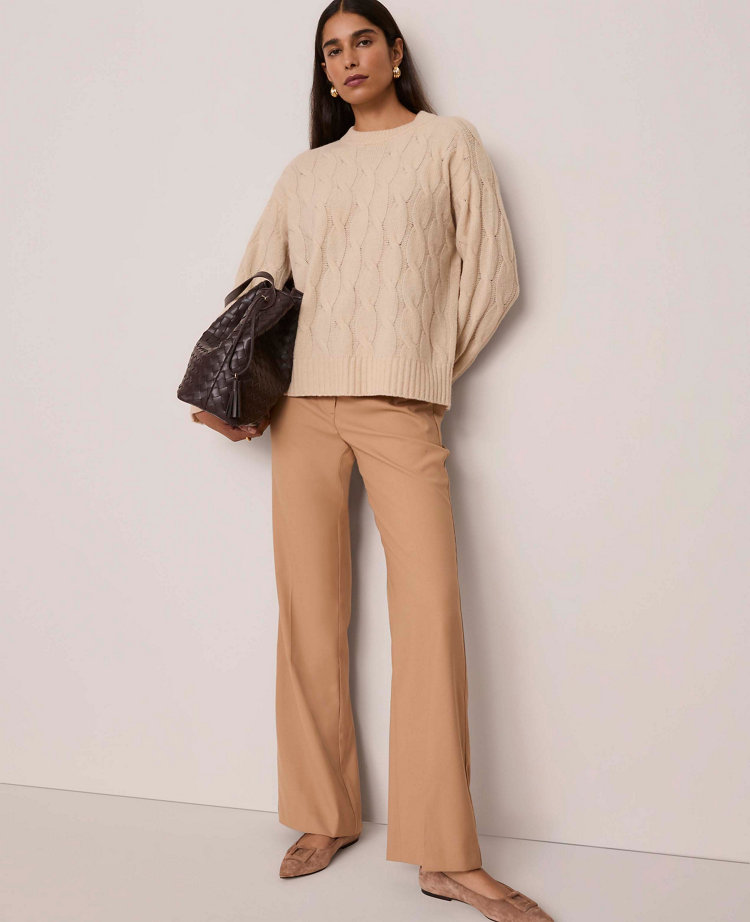 Designed with cozy cable detail, this relaxed crew neck is the quintessential wear-with-anything sweater. Ribbed crew neck, cuffs, and hem. Long sleeves. Drop shoulders.