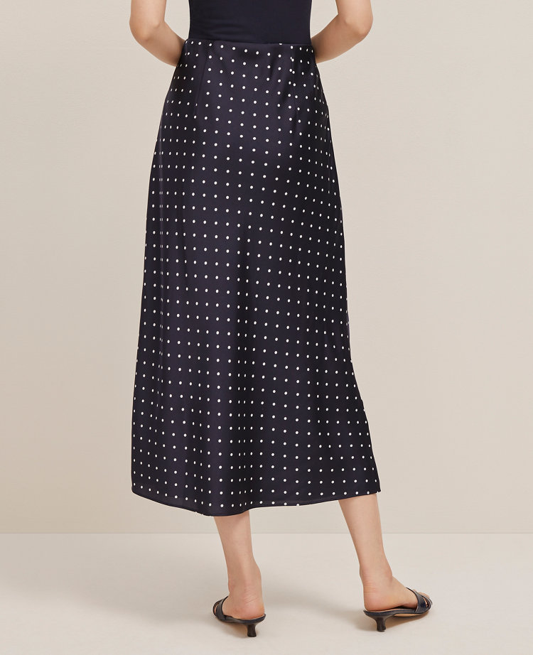 Our bias midi slip skirt flatters in a softly flared pull-on silhouette. Elasticized waist. Lined.