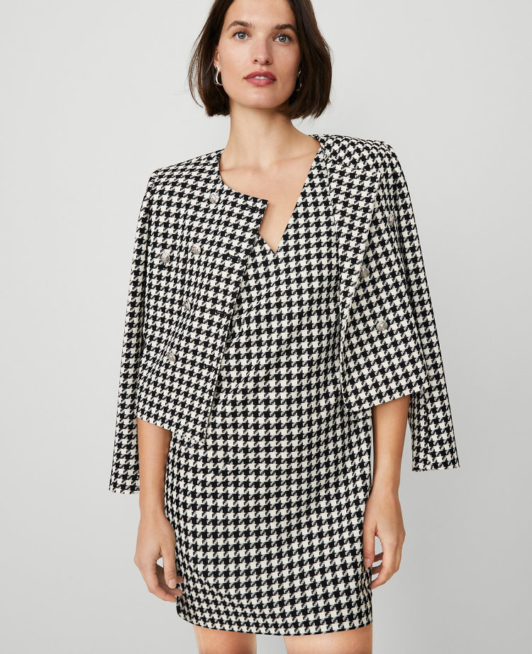 Houndstooth V-Neck Sleeveless Shift Dress