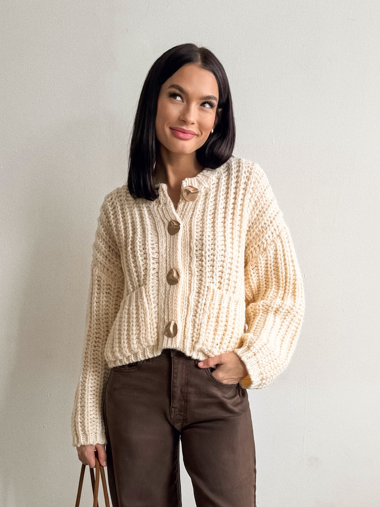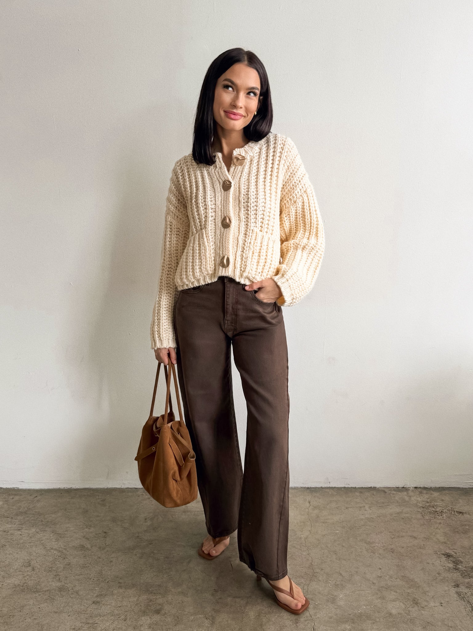 Introducing our NEW Ilya Chunky Knit Sweater! Style this sweater with a basic tank. maxi skirt. and boots for a brunch with the girls! Accessorize with gold jewelry and sunnies to complete the look.