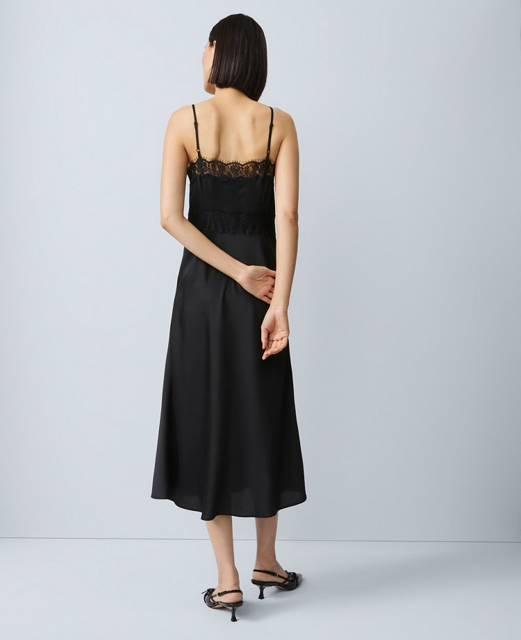 Lace Trim Satin Slip Midi Dress