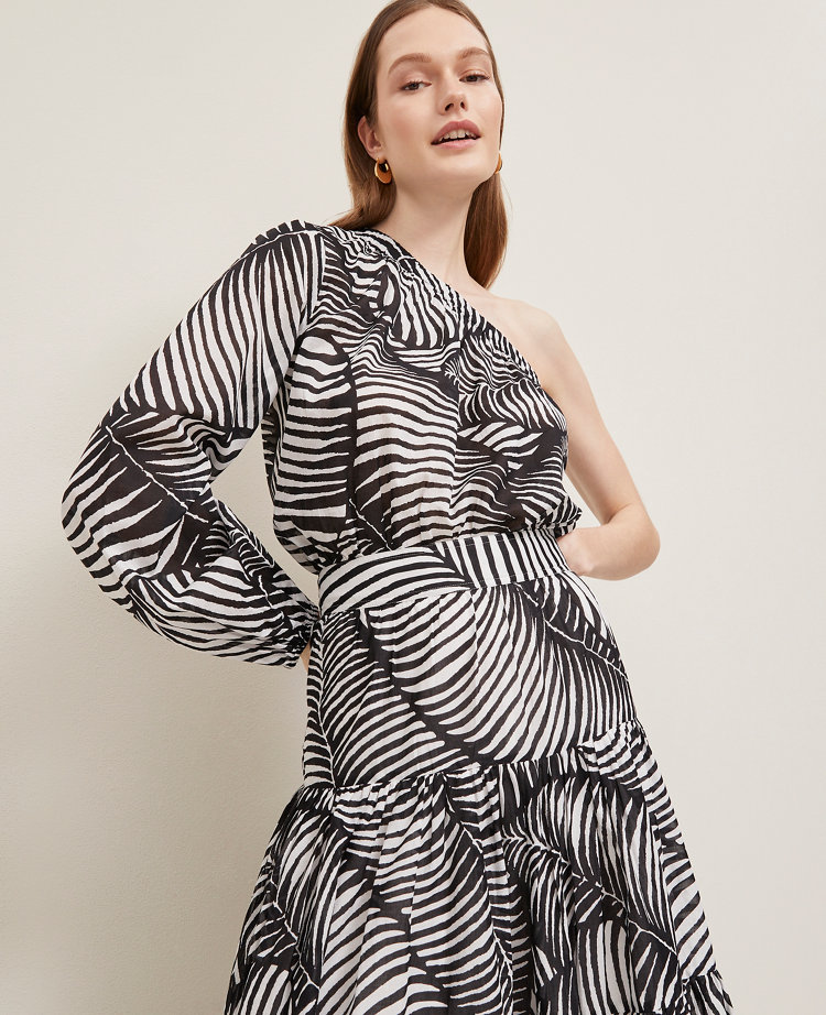 With its sleek one-shoulder styling, this flowy cotton voile top is a fresh silhouette you’ll turn to all season long. Elasticized one-shoulder neckline, cuff and hem.