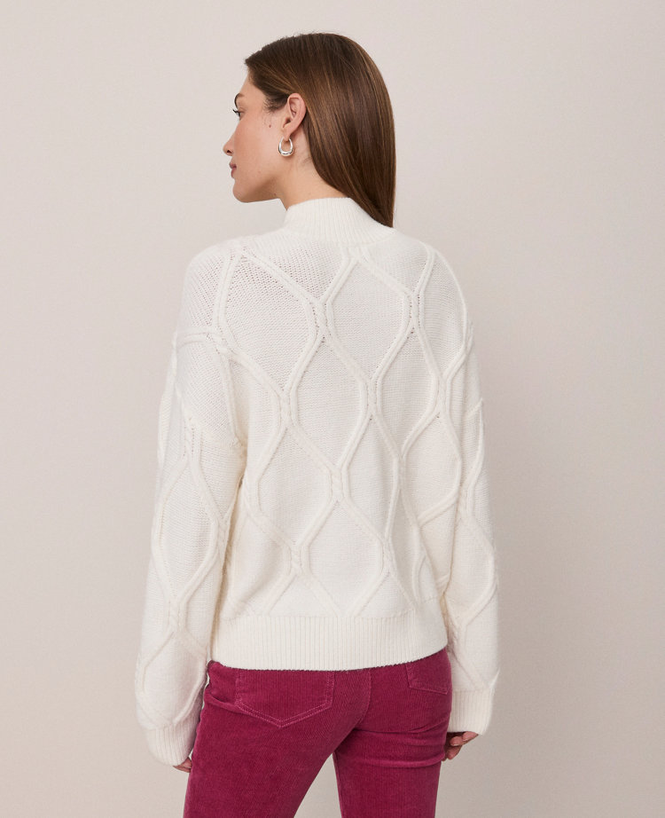 Discover Ann Taylor Weekend. Effortlessly polished, lived-in looks for wherever your plans take you. Cozy up with this plush sweater, featuring a chic and timeless diamond cable pattern. Mock neck. Long sleeves. Dropped shoulders.