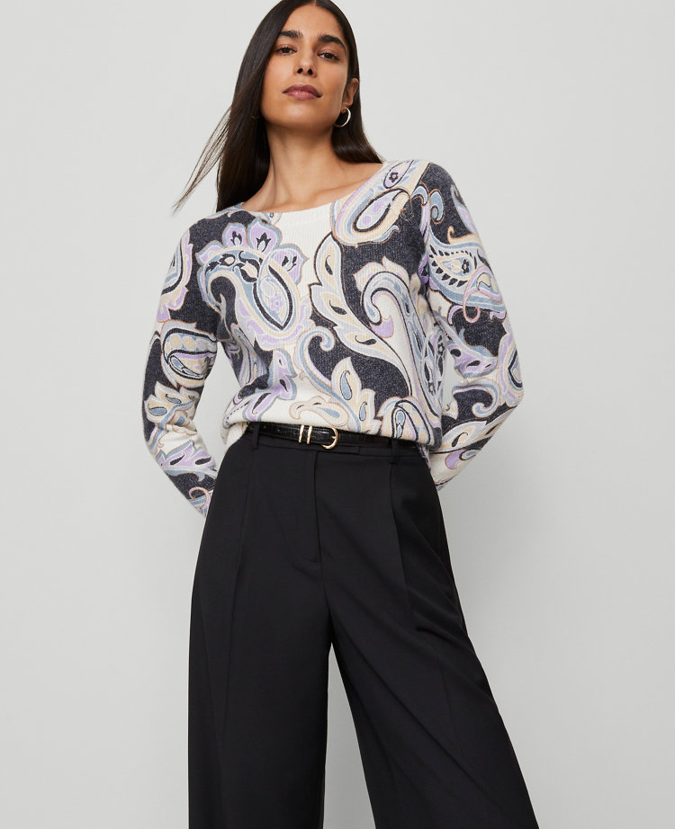 Discover Ann Taylor Weekend. Effortlessly polished, lived-in looks for wherever your plans take you. Versatile and polished, this sweater is designed with a removable scarf you can loop around your neck or drape over one shoulder. Mock neck. Long sleeves. Back-button removable scarf. Ribbed cuffs and hem.