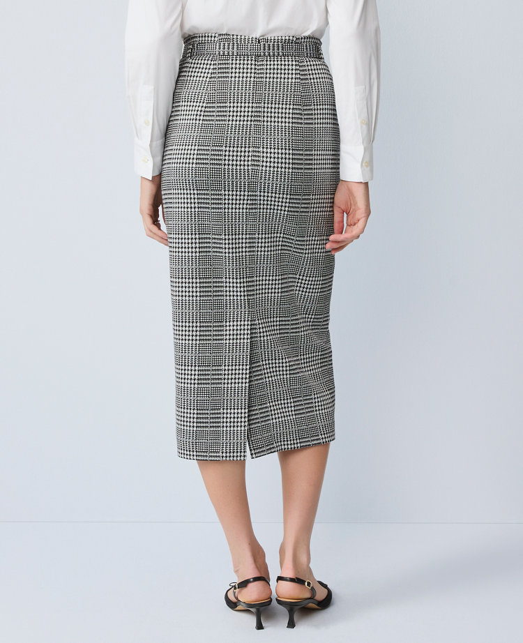 Plaid Belted Midi Pencil Skirt