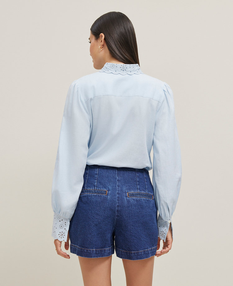 The perfect balance of casual and sophisticated, our fresh denim short is a versatile-yet-polished style you’ll love. Slash pockets. Side zip. Back besom pockets.