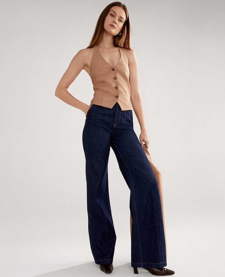 Shaped with a fresh halter neck, this tailored vest elevates pencil skirts and fluid pants alike. Halter V-neck. Front button closures. Front welt pockets. Hidden side-zip closure. Lined.