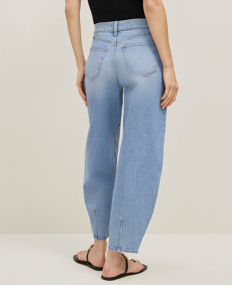 Our high-rise barrel jeans are designed with sculpting pockets that smooth, flatter and hold your shape. Performance stretch denim sculpts, shapes and supports all day long. Front zip with a button closure. Belt loops. Classic five-pocket styling.