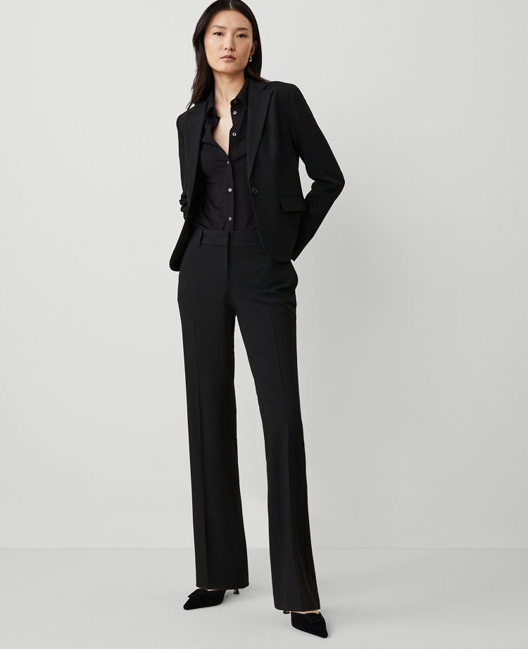 The versatile, streamlined look is back – our trouser is ultra flattering – and made in seasonless stretch fabric for a refined, streamlined fit. Front with double hook-and-bar closure. Belt loops. Front off-seam pockets. Back besom pockets.
