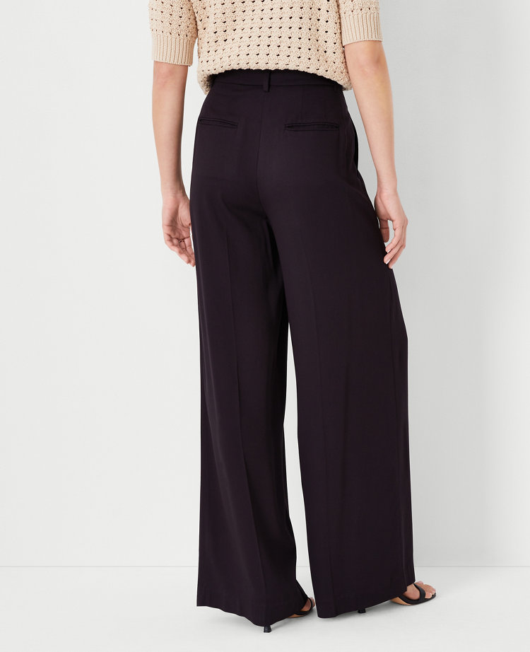 Our pleated wide-leg pant is a modern must-have, with a perfect drape and high waist that endlessly flatters. Front zip with double hook-and-bar closure. Belt loops. Front onseam pockets. Back besom pockets.