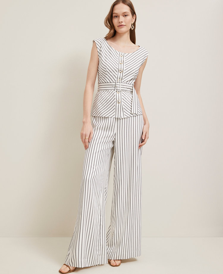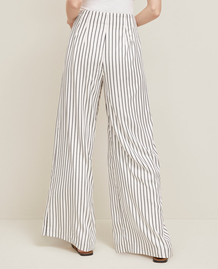 Our wide-leg pant is a modern must-have with a perfect drape and flattering high waist. Side zip.
