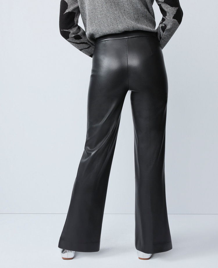 Designed in luxe faux leather, these straight-leg pants are flattering, versatile and evoke a modern feel. Front zip with double hook-and-bar closure. Back patch pockets.