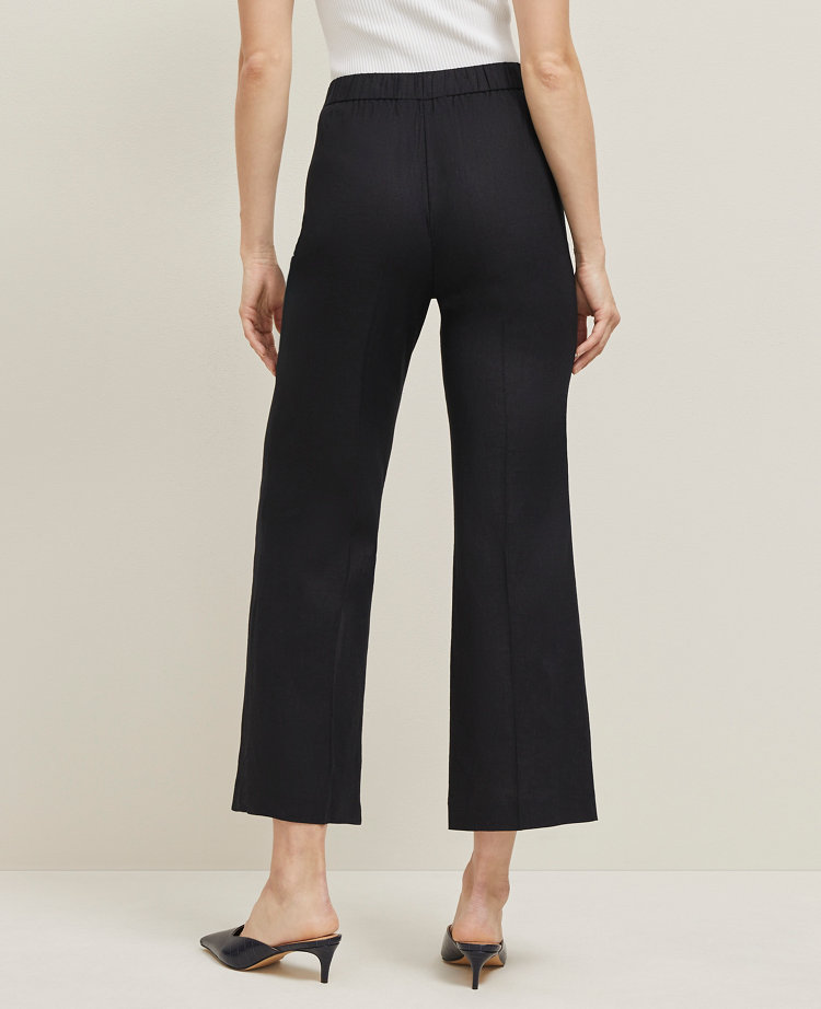 Our flare pant is a modern must-have with a perfect drape and high rise that endlessly flatters. Elasticized back waist. Side zip.