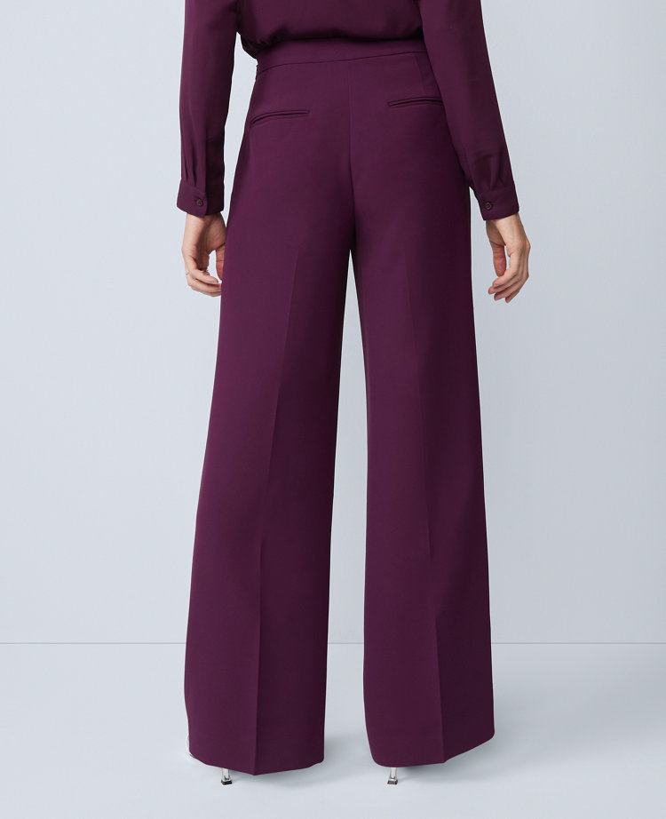 Our wide-leg pant is a modern must-have with a perfect drape and high waist that endlessly flatters. Hidden side zip with hook-and-eye closure. Front off-seam pockets. Back besom pockets.